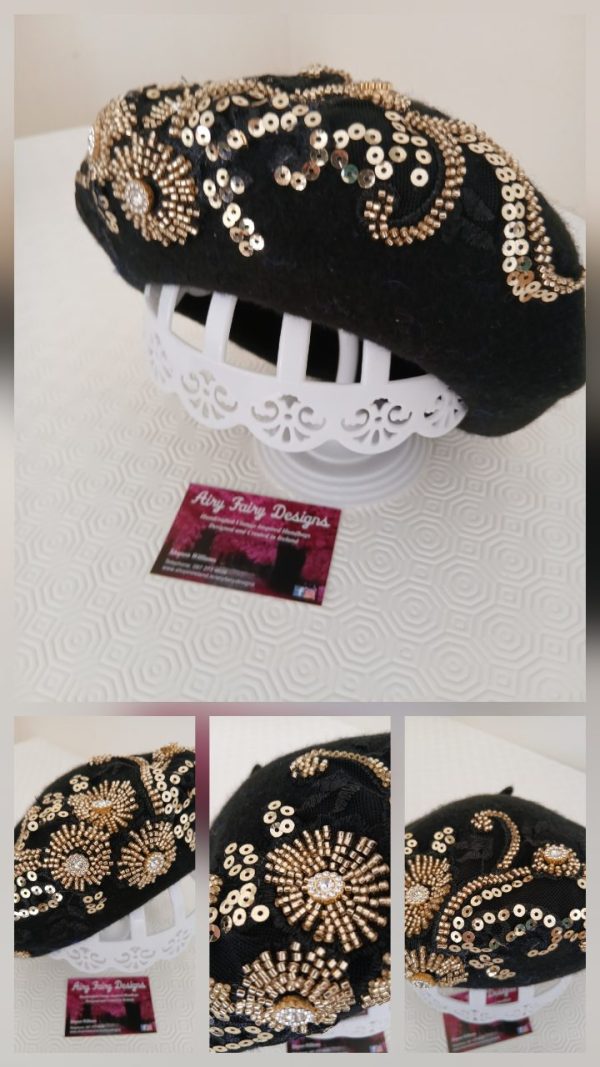 Customised Wool Berèt - Wine - Handsewn Floral Appliquè